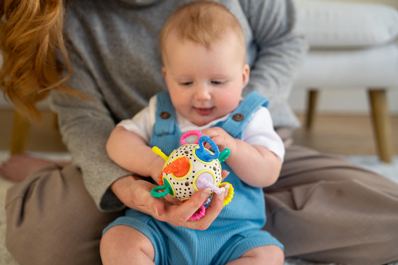 - Encourages fine motor development through grasping