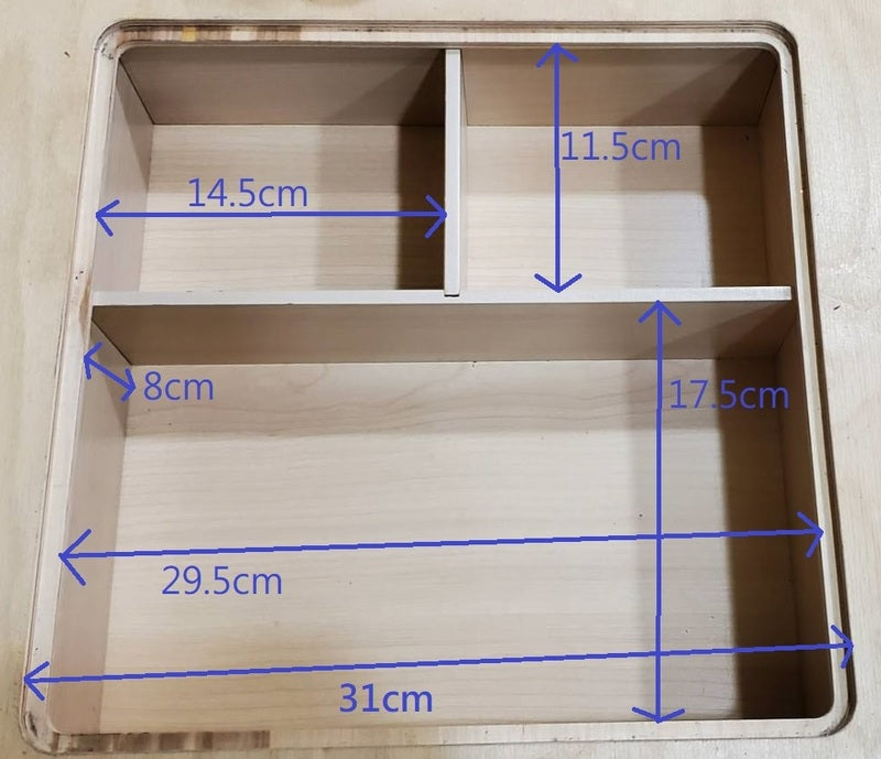 Middle Compartment: Measures 31cm x 31cms. See the image for inside measurements.